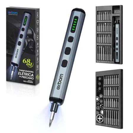 A parafusadeira elétrica de precisão recarregável EXBOM-CKE6800 oferece versatilidade com seu conjunto 11 em 1, incluindo ponteiras imantadas que garantem maior controle e eficiência na fixação de parafusos pequenos. Ideal para trabalhos delicados em eletrônicos, relógios e equipamentos de precisão, seu design compacto e bateria recarregável proporcionam praticidade e autonomia para uso contínuo. Uma ferramenta essencial para profissionais que buscam precisão e desempenho confiável em tarefas detalhadas.